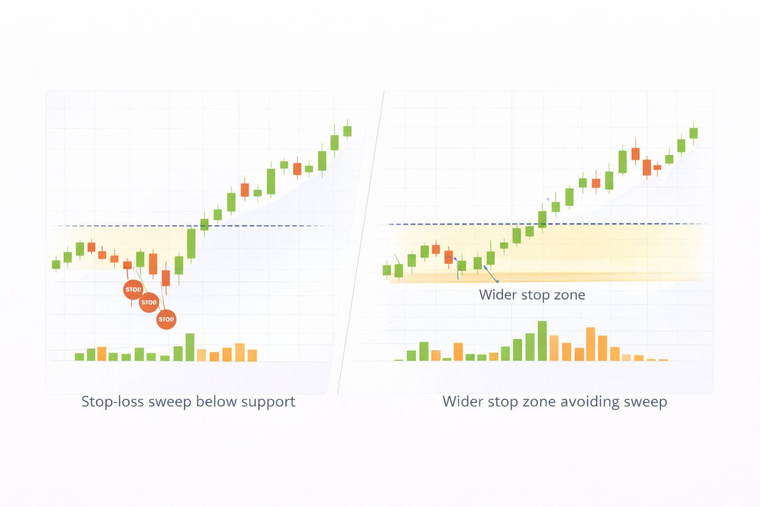 손절은 보통 지지선/전저점/박스 하단 같은 "많은 사람이 같이 보는 가격"에 걸립니다.