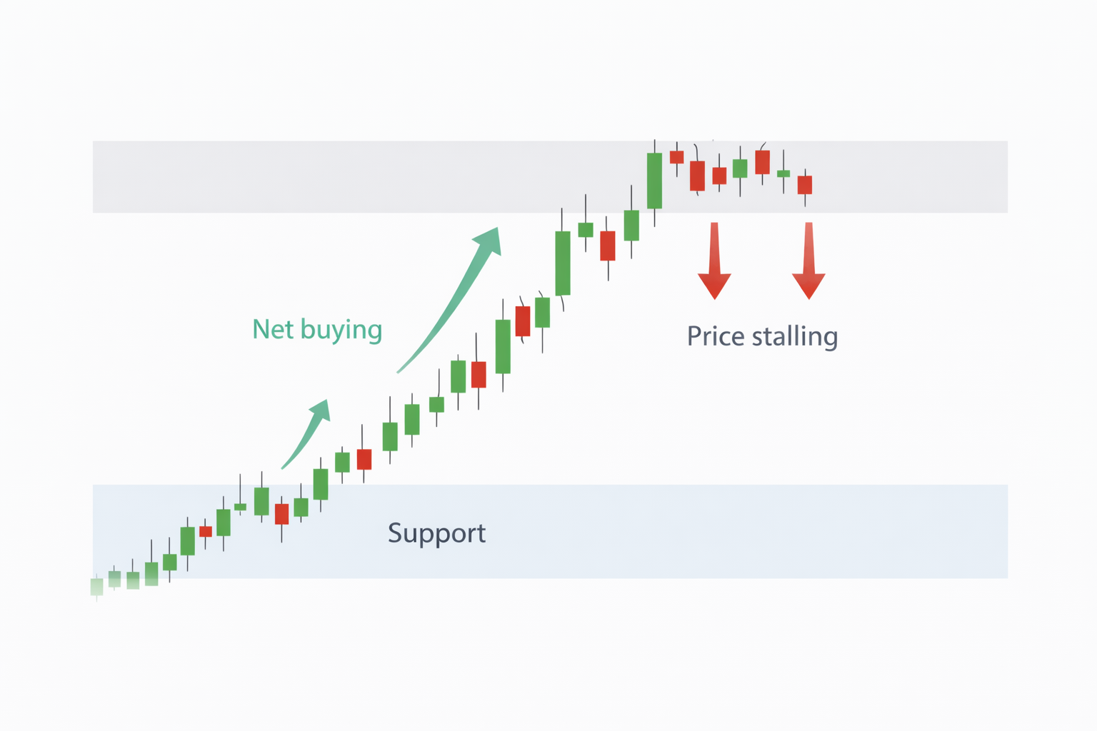 순매수 + 종가 약함 + 윗꼬리 → 상단 매도벽 강함