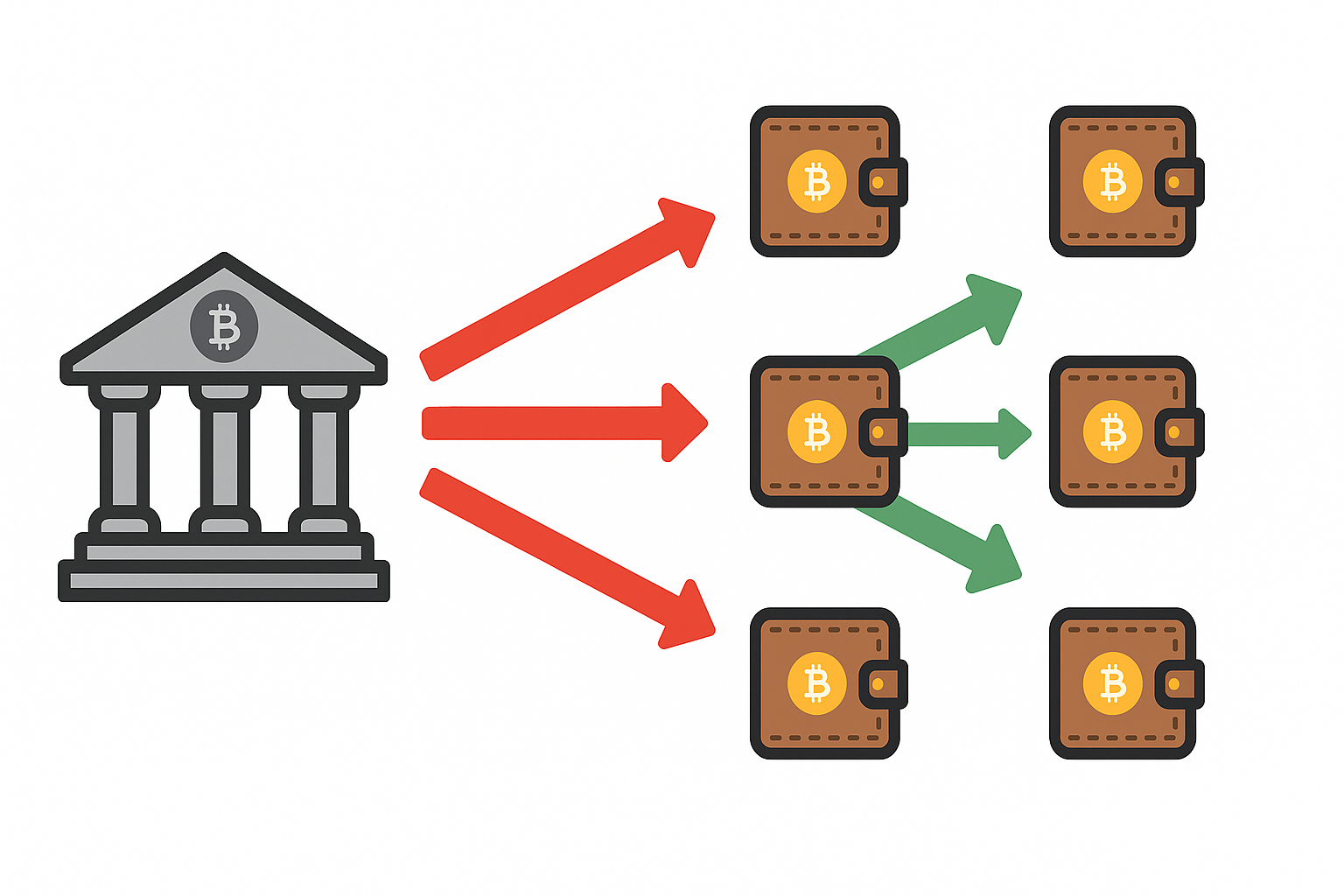 - 코인들이 개인 지갑·콜드월렛으로 빠지는 그림