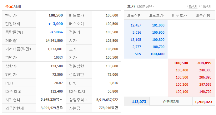 - 하한가: 하루에 내릴 수 있는 최대 한도까지 하락한 가격