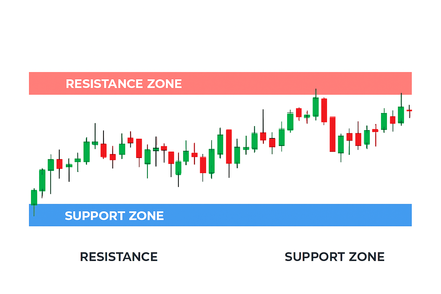 위아래 꼬리 범위를 포함해서 “지지/저항 구간”으로 인식하는 게 좋습니다.