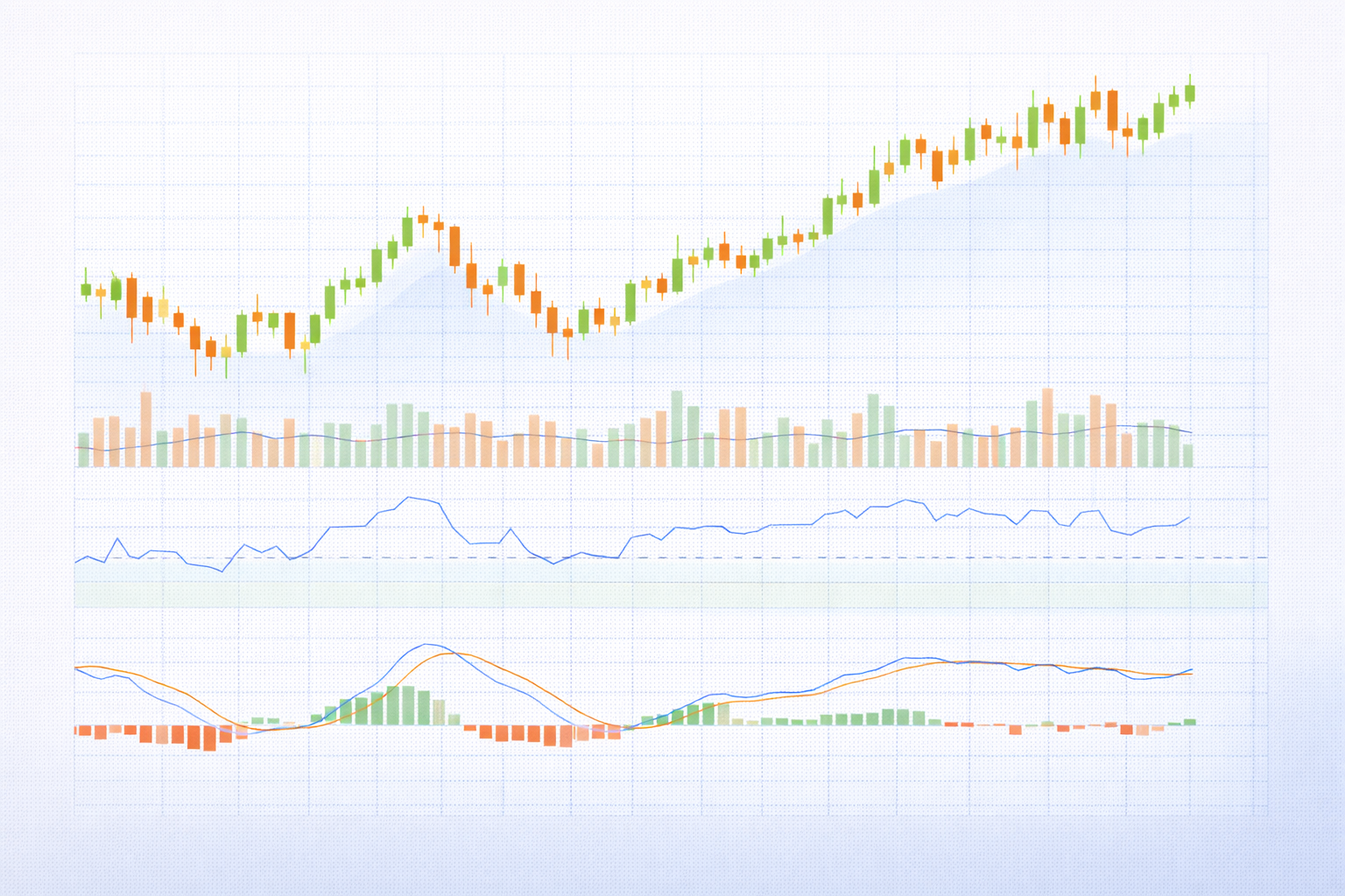 - 화면은 가격창 + 거래량 + RSI + MACD 4단 구성 추천