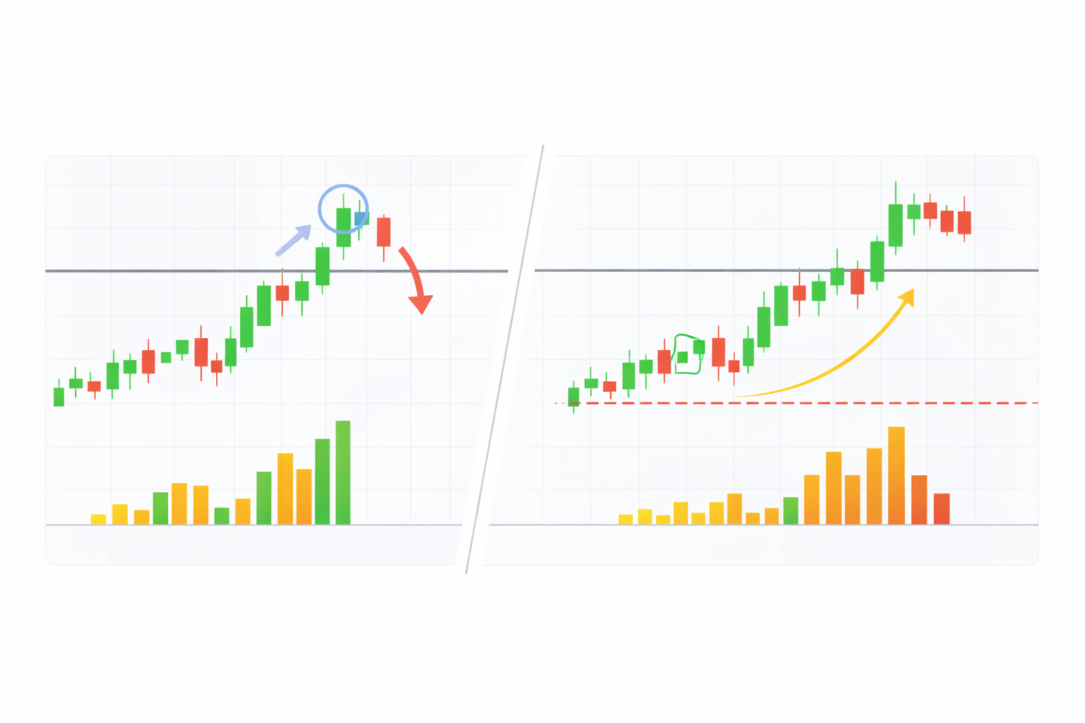 “거래량 터짐 → 더 간다”만 보고, 위에 있는 저항/매물대/급등 후 되돌림은 안 보이기 시작해요.