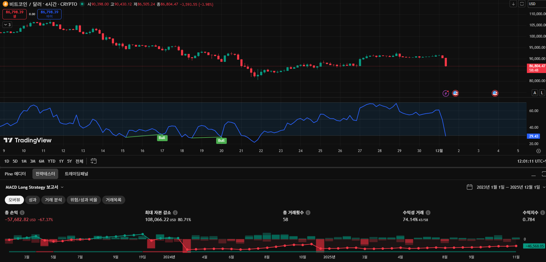 3-1. 비트코인 – 하락장 말기에 나온 RSI·MACD 강세 다이버전스